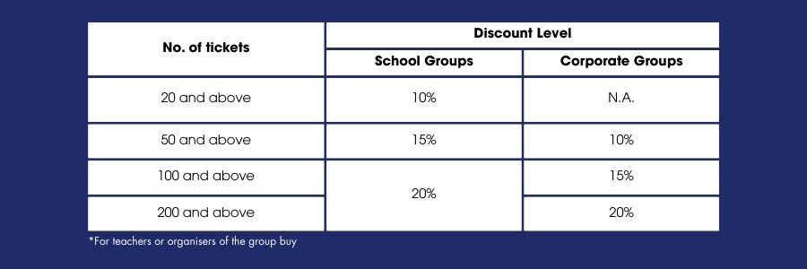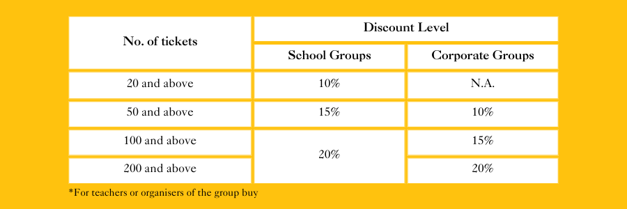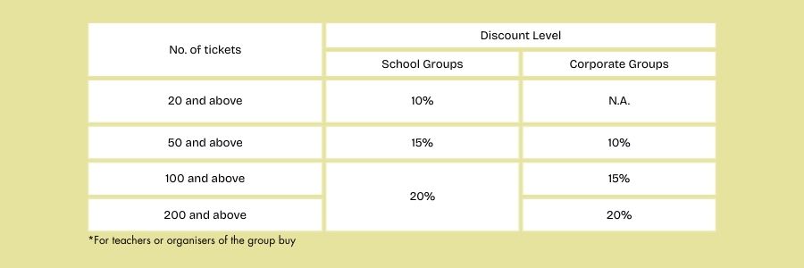 Enjoy exclusive offers for group bookings (11 pax and above) such as discounts, complimentary tickets, exclusive experiences and more!