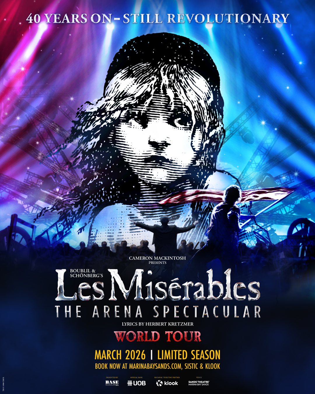 Cameron Mackintosh’s production of Boublil and Schönberg’s LES MISÉRABLES THE ARENA SPECTACULAR has commenced its record-breaking World Tour and will arrive in SINGAPORE 2026 with strictly limited performances. As the world’s longest-running musical enters its 40th revolutionary year in London, this spectacular production features an extraordinary and exciting new design specifically created for larger venues with a cast and orchestra of over 65 members.